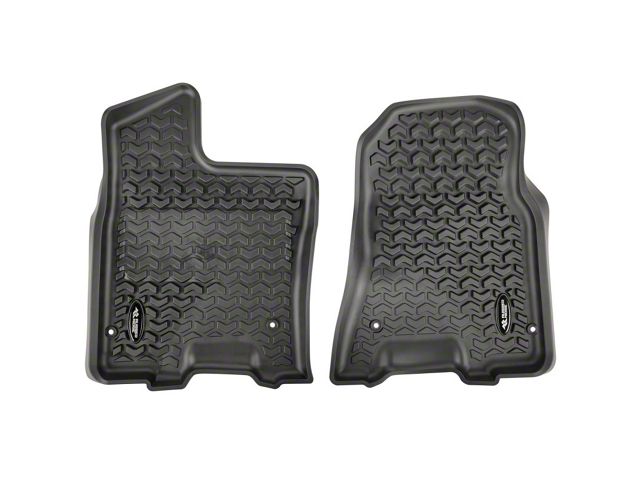 Rugged Ridge Floor liners provide complete protection for the cabin floor of your vehicle while keeping it looking factory fresh. Each liner is perfectly contoured to your vehicle's floor for precise secure fitment (floor hook attachment where applicable). The raised lip captures all spills, water and debris keeping your interior pristine. The Chevron-shape patented Deep Tread Technology channels liquid away from your shoes keeping them dry. Made of a durable OE-quality Thermoplastic material that can withstand the rigor of daily abuse. Backed by our Limited Lifetime Warranty. Patent No. 8,163,369; D627,285; 2,699,641