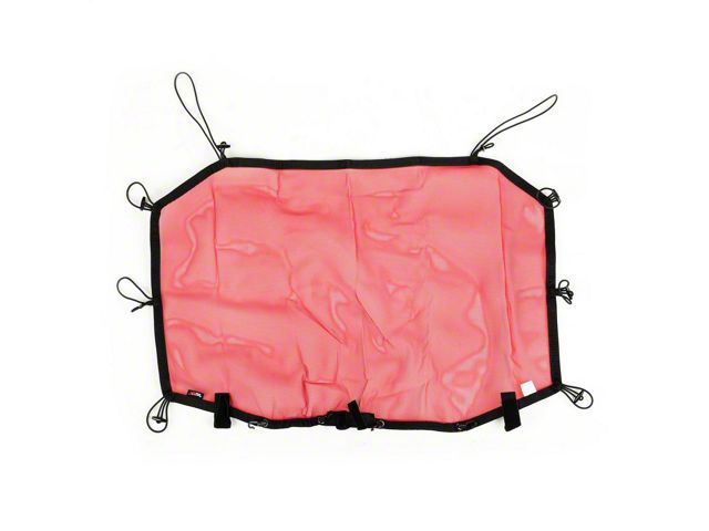 This Rugged Ridge Eclipse Sun Shade in red mesh gives your Jeep a nice little color accent. The Rugged Ridge Eclipse Sunshade gives the open air feeling you want, while providing added protection from harsh sunlight. Featuring reinforced mesh construction, the half sun shade installs between the front portion of a JK sport bar and windshield to protect either front or rear passengers separately. By using the mesh material with built-in elastic straps, this sunshade was designed from the start to eliminate the need for a header channel as with other similar products. An all-in-one package, this sunshade is simple to install and does not require any modifications. By retaining access to the Jeep top clamps, drivers can keep the shade in place and preserve function of the factory hardtop.