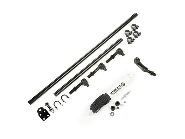Beef up your ride with Rugged Ridge steering components. This is a bolt-on solution for preventing bent tie rods from wheeling with larger tires. The tubes are 1-1/4 in. OD steel that is cold rolled, pierced, and drawn through dies to produce a 1/4 in. wall thickness. This is true DOM tubing with NO seams OR welds to fail. Heavy duty 7/8 in. rod ends feature standard tapered ends to fit stock knuckle applications. You get one ton strength without any modifications to your steering knuckles. Kit includes damper. Will not work with Factory Rubicon Wheels. Not recommended for vehicles with over 4 in. of lift. Not compatible with smaller OEM steel wheels or wheels with deep backspacing. Not recommended for vehicles with under 2 in. of suspension lift.