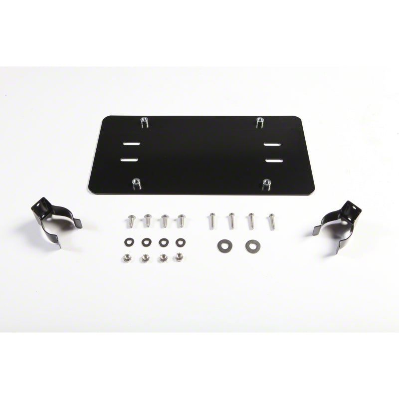 If you're state requires a front license plate, we have a solution for you. Instead of drilling holes in your bumper or risking not running a front plate, this easy to install license plate holder attaches to your winch roller fairlead. Simply bolt your license plate to the bracket and snap the holder in place. Your license plate is now securely mounted yet easily removable for winching.