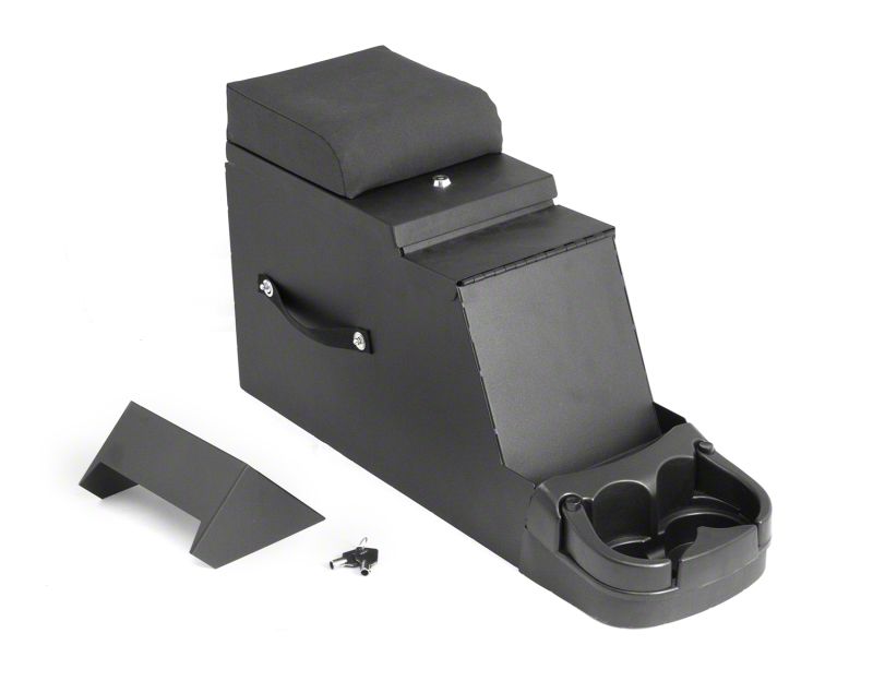 This stereo security console from Rugged Ridge has a black powder-coated finish. Rugged Ridge Consoles are the ultimate storage solution. Each console is constructed of durable vinyl that seamlessly matches your Jeep's interior and provide a great looking addition to your Wrangler. Each console is hand made to ensure a tight, wrinkle free finish. All Rugged Ridge Consoles feature a six can cooler, a comfortable dense foam arm rest, and all necessary mounting hardware for your convenience.