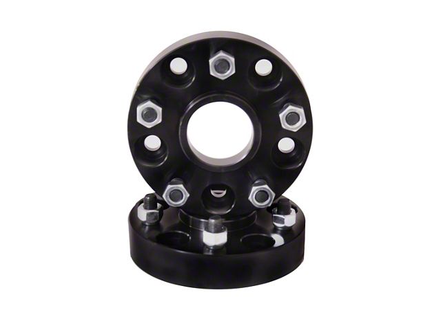 These hub centric spacer adapters move your wheels out to help fit wider tires and give your Jeep a wider track with improved stability. Constructed of double anodized black 6061T6 aluminum for long life and extra corrosion resistance. All hardware is grade-8 for extra strength. Each part number comes as a spacer pair. Included are ten pre-installed grade-8 wheel studs, ten lug nuts and a thread locker.