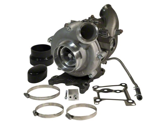 Say goodbye to the problematic and small GT32 Single Sequential Turbocharger (SST) on the early model Ford 6.7L Powerstrokes by replacing it with BD's complete Screamer Stage 1 Retrofit Turbo solution. Utilizing modern turbo technology, the Screamer Stage 1 delivers up to 66lb/min of increased airflow without compromising on low end response and everything you require is included to drop right in place of the old unit, no extra pieces needed. The Screamer Stage 1 Retrofit turbo will require a tuner such as the Edge Evolution CS2 or Edge Evolution CTS3 to ensure no faults codes are set. For trucks wanting to push past 500hp, we recommend the Screamer Stage 2 Retrofit kit (1045825).