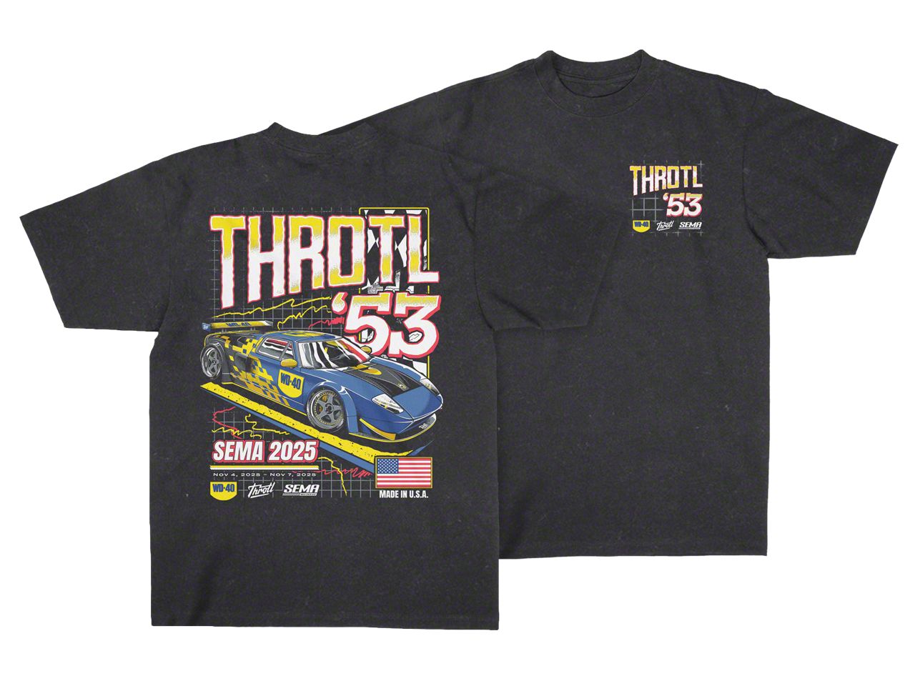 Own a piece of automotive history with the SEMA Official: Ford GT Oversized Short Sleeve Tee Shirt (throtl x WD40 Brand), built for enthusiasts who appreciate both performance and timeless style. Featuring a garment-dyed, vintage-inspired finish and an oversized fit, this tee brings modern comfort with a nod to classic car culture.