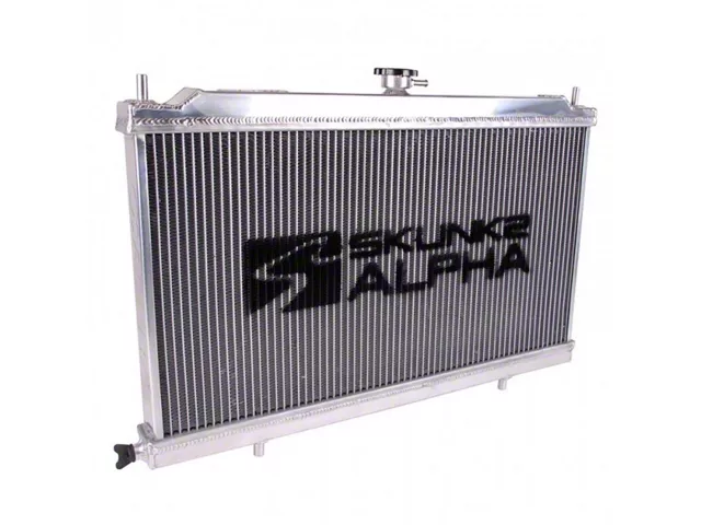 Skunk2's all-aluminum, full-size Alpha Series Radiator for the '88-'91 Civic/CRX is a direct-fit upgrade designed to dramatically increase both cooling efficiency and engine performance. Alpha Series Radiators are manufactured from lightweight and durable aluminum, feature 100-percent brazed cores, and include polished end tanks with Skunk2's signature Alpha logo embossed along each side. Each Alpha Series Radiator features a dual-core design, high-efficiency fins for maximum cooling capabilities, and includes a genuine Skunk2 Radiator Cap for maximum performance and a premium appearance. Each Alpha Series Radiator also includes provisions for the OEM cooling fan and larger 1.25- in. inlets and outlets, which makes it ideal for most engine swaps that utilize larger radiator hoses. Skunk2's commitment to producing high-quality components means that each Alpha Series Radiator meets or exceeds original equipment manufacturer standards, that each radiator may be installed without modification to the vehicle, and is compatible with OEM hoses, cooling fans, and shrouds. (Note: Some engine swap applications may require custom radiator hoses and/or cooling fans.) Skunk2's Alpha Series Radiators are the perfect addition to any high-performance vehicle and are designed for the street, the track, or even OEM replacement purposes. Alpha Series Radiators are built to withstand harsh elements as well as against years of under-hood heat cycling. Each Alpha Series Radiator adheres to strict quality control standards and careful packaging, resulting in tubes and fins capable of optimal flow and efficient heat transfer.