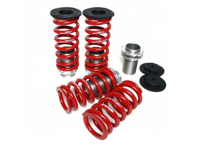 Skunk2's Adjustable Sleeve Coilovers for the '92-01 Prelude are the industry's most affordable yet aggressive suspension system that allows street and track enthusiasts to fine tune vehicle ride height, balance, and handling performance. With nearly 15 years of spring technology and suspension tuning experience, Skunk2's race-inspired, Adjustable Sleeve Coilover system provides a cost-effective alternative to more expensive full coilovers like our Pro-S II and Pro-C systems. Each Adjustable Sleeve Coilover kit features hard anodized, CNC-machined aluminum sleeves, forged spring perches, SAE 9254V racing springs, and mounting hardware that allows for as low as a three- in. drop (sometimes more). Designed to be used with OEM or aftermarket shocks, Skunk2's Adjustable Sleeve Coilovers allow for independent shock replacement, which means suspension systems can be upgraded in stages. When applicable, Skunk2 Adjustable Sleeve Coilovers should be paired with Skunk2 Sport Shocks for maximum performance.