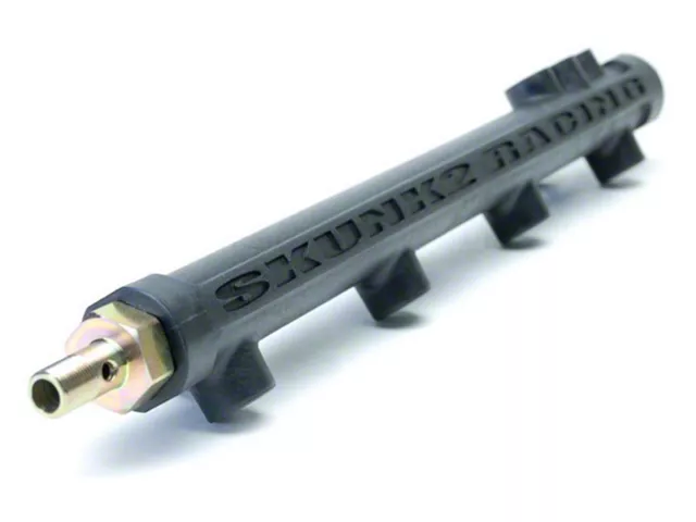 Skunk2's cutting-edge Composite Fuel Rail for Honda's B-series engines is here. Skunk2's Composite Fuel Rails are made using a proprietary carbon-impregnated, aerospace thermo-polymer composite—a material that's 33-percent lighter, 60-percent stronger, and operates up to 100-degrees F cooler when compared to aluminum and insulates fuel from both radiant and conductive heat transfer underneath the hood, resulting in increased horsepower and torque. Composite Fuel Rails also feature large 0.625- in. internal bores for superior fuel injector pulsation dampening, are machined with a smooth interior finish, and feature radius-cut fuel injector outlets for improved flow characteristics. The special design that eliminates the sharp internal angles where the main bore meets the fuel injector bores inherent with conventional extruded- and drilled-aluminum designs can only be achieved with such composite materials. Skunk2's B-series Composite Fuel Rails are compatible with the factory fuel system, as well as all fuels, including alcohol, and can support up to 1,200 hp, with gains as high as three percent realized during testing.