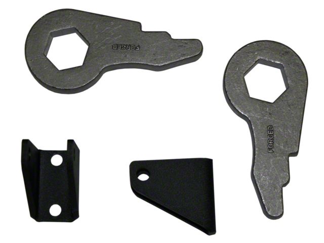 Forged torsion key kits consist of a set of re-engineered forged torsion adjustment keys. This design levels out the front of all torsion bar-equipped 2wd and 4wd trucks and SUVs without compromising the factory ride and allows for up to 33 in. tall tires. These Skyjacker torsion keys use superior manufacturing, materials and tolerances in order to increase the strength of these torsion keys. These tight tolerances increase the surface area contact between the torsion key and bar, increasing the strength of the overall design and improving functionality. Forged the same as OE to assure durability and longevity, not cast or machined.