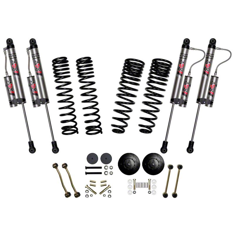 The biggest determining factors in ride quality and suspension performance are coil springs and shocks. Skyjacker specifically engineered a progressive variable rate coil spring, distinctively a 2-stage dual rate long travel coil. Spring rate progression is from a 1st Flex Rate to a 2nd Ride Rate. The 1st Flex Rate stage delivers a comfortable ride with the ability to flex for increased articulation. The flex rate expands during full articulation as the suspension drops (full droop). This keeps the coil springs seated in the upper coil mount/bucket and the tires in contact with the terrain. The 2nd Ride Rate stage only engages after compression past the flex rate. Engineered to coordinate with the Gladiator's distinctive suspension handling characteristics, the rear coils are side specific.