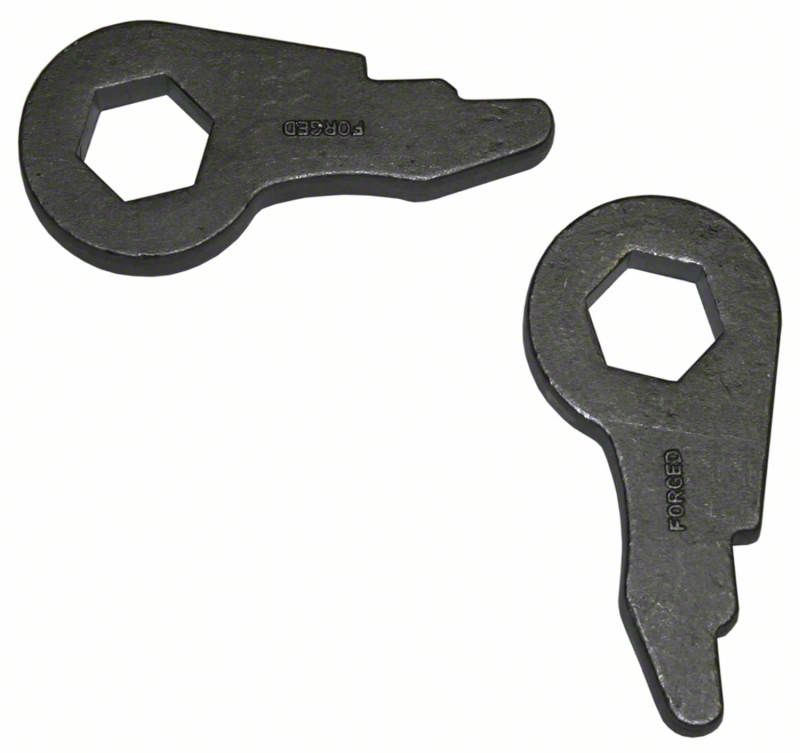 Forged torsion key kits consist of a set of re-engineered forged torsion adjustment keys. This design levels out the front of all torsion bar-equipped 2wd and 4wd trucks and SUVs without compromising the factory ride and allows for up to 33 in. tall tires. These Skyjacker torsion keys use superior manufacturing, materials and tolerances in order to increase the strength of these torsion keys. These tight tolerances increase the surface area contact between the torsion key and bar, increasing the strength of the overall design and improving functionality. Forged the same as OE to assure durability and longevity, not cast or machined.