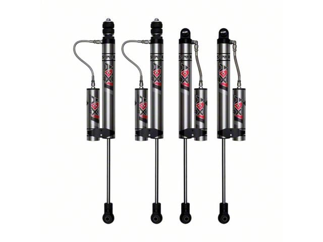 Shocks key role is to optimize your suspension by keeping your tires in contact with the terrain. They dampen out or control the unwanted oscillation motion and improve ride quality and vehicle handling. Engineered for higher speed applications, remote reservoir shocks still perform at crawl. If we are honest, we spend way more time on our daily commutes than we are able to spend on the trails. Quick starts, up and down acceleration and hard stops are a daily routine. The superior construction of Skyjacker's ADX 2.0 Remote Reservoir Aluminum Monotube Shocks delivers the most recent stage in the development in shock technology with an innovative off-road race inspired full displaced valve system. The large 46mm bore size of the Monotube and remote reservoir reacts quicker and creates the smoothest ride possible. The Teflon banded piston's smooth reaction delivers superior ride performance and adds stability on various terrains. The external remote reservoir separates the nitrogen gas from the oil with an Internal Floating Piston (IFP). Skyjacker's ADX 2.0 shock technology constant controlled resistance performance prevents lag (decline) or fade (failure). The high-pressure nitrogen gas and IFP technology combine to create the fastest responding shock ever. The separate remote reservoir allows more room in the shock cylinder to increase the oil capacity and to use a longer piston rod. The longer rod allows more piston stroke in consistent viscosity oil and more articulation travel. Skyjacker's ADX 2.0 Monotube design from high-grade T6061-T6 aluminum helps dissipate heat and runs cooler. This aluminum body and aluminum remote reservoir setup overall weighs less too. Skyjacker's new ADX 2.0 is all about cool, control and comfort. The unique smooth polished clear coat aluminum ADX 2.0 tubes are way cool looking straight out of the box, but their consistent dampening provides better performance, cooler running, more control and improved driving comfort.