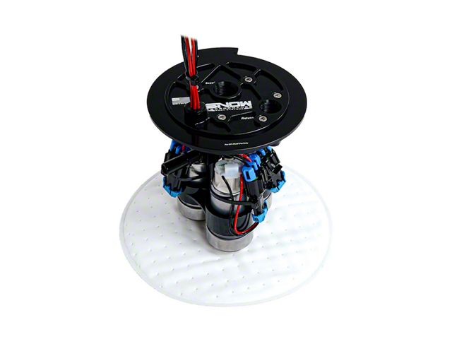 To meet your specific vehicle's fuel demands, these pump assemblies are configurable with a combination of 2 or 3 fuel pumps. No knock-off pumps here. Get OE reliability with genuine TI Automotive (Walbro) fuel pumps in your choice of flow rates (450LPH or 470LPH). These fuel pumps are designed for a return-style installation only. Do not attempt to run these pumps in a returnless application. These pumps are compatible with 100% Gasoline, 100% Ethanol or any blend of Gasoline and Ethanol (E10, E85, E98 for example). These pumps are NOT compatible with methanol. For street-driven applications, it can be beneficial to combine a smaller fuel pump along with one or two larger fuel pumps. This allows you to street drive on the smaller fuel pump which has a lower amp draw and does not generate as much heat. Once you get into boost, the larger pumps can be activated to support your high horsepower needs. The easiest way to do this is to use a Snow Performance Boost activated pressure switch (part # SNO-81014) and a Snow Performance Multi-Pump Relay Module (part # SNF-20003). Available pump configurations are shown below: