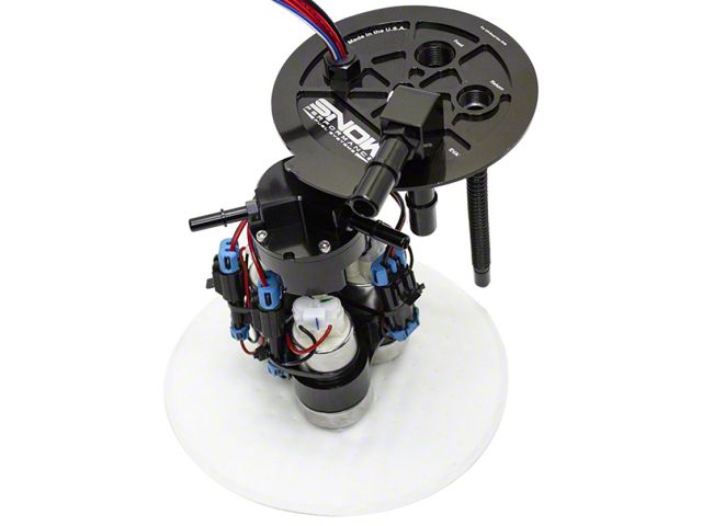 To meet your specific vehicle's fuel demands, these pump assemblies are configurable with a combination of 2 or 3 fuel pumps. No knock-off pumps here. Get OE reliability with genuine TI Automotive (Walbro) fuel pumps in your choice of flow rates (450LPH or 470LPH). These fuel pumps are designed for a return-style installation only. Do not attempt to run these pumps in a returnless application. These pumps are compatible with 100% Gasoline, 100% Ethanol or any blend of Gasoline and Ethanol (E10, E85, E98 for example). These pumps are NOT compatible with methanol. For street-driven applications, it can be beneficial to combine a smaller fuel pump along with one or two larger fuel pumps. This allows you to street drive on the smaller fuel pump which has a lower amp draw and does not generate as much heat. Once you get into boost, the larger pumps can be activated to support your high horsepower needs. The easiest way to do this is to use a Snow Performance Boost activated pressure switch (part # SNO-81014) and a Snow Performance Multi-Pump Relay Module (part # SNF-20003). Available pump configurations are shown below: 2 Pump Street able Configuration (one 450lph pump and one 470lph pump). This configuration is capable of supporting 1000+ rwhp on e85 and 1300+ on gasoline. -Current Selection 3 Pump Street able Configuration (One 450lph pump and Two 470lph pumps)- This configuration is capable of supporting 1500+ rwhp on e85 and up to 2000 rwhp on gasoline. This configuration draws 10-12% less current than the Race 3 pump version. 3 Pump Race Configuration (Three 470lph pumps). This configuration is capable of supporting 1600+ rwhp on e85 and up to 2100 rwhp on gasoline. This configuration is designed for max effort/flow.