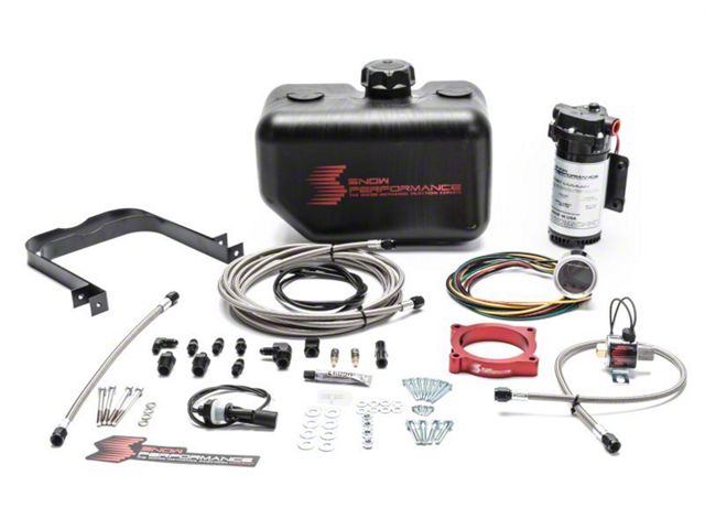Snow Performance has combined performance, quality and easy installation in this new water-methanol injection system engineered specifically for 2015+ Ford Mustangs equipped with the 2.3L EcoBoost engine. Increase your pump gas octane by 25 points and make more power efficiently with a cooler running motor! Complete with custom water-methanol injection throttle body spacer plate, braided stainless line, and 4AN fittings offering unsurpassed reliability and ease of install. The Stage 2 uses a progressive VC-50 controller (ISO 9001 Manufactured) that proportionally injects more or less according to boost pressure. Start and full points are adjustable for engagement and delivery curve to match what the engine requires. Proportionally injecting according to boost pressure gives an accurate delivery of water-methanol and allows cooling and performance improvements over a wide range for improved drivability. The VC-50 controller (52mm gauge) offers the functionality of a boost gauge and water-methanol controller all in one! Highlighting a 7 color (Blue, White, Red, Yellow, Orange, Purple, Green) OLED screen displaying boost, percentage of injection, low level, secondary nozzle activation, prime button, and 2 fault codes directly on the screen you can tailor the controller to match your OEM gauges or mix and match up to two colors. Fits all 2015+ Ford Mustang equipped with the 2.3L EcoBoost engine.