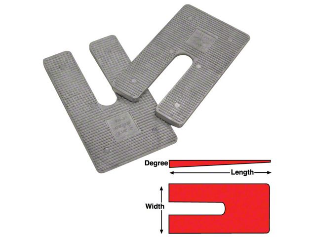 These economical over-the-road heavy duty truck axle shims are our lowest cost option. With average compression strength and hardness these shims are available in a large variety of sizes and offer the technician a cost effective means to correct caster on over-the-road trucks and trailers. NOTE: Ordering one Part Number supplies Six Shims in a box. When placing order spring pad length and width are needed. California Residents WARNING