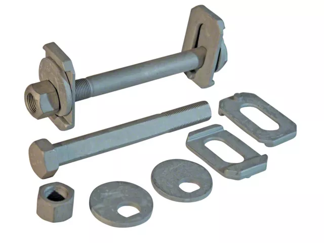 This heavy duty cam-bolt kit was specifically designed for the extreme Raptor & F-150 user. Whether you are a energetic Raptor driver or abuse your F-150 in the fields and on the job site, you may have found that the OE bolts slip or that a single cam option does not hold alignment. This upgraded cam kit features two cams and bosses per bolt. The two cams will keep your bolt square and make adjustments easier while the new bolt and low friction finish achieve 25% more clamp load than the OE hardware. Some drilling is required to accomodate the second boss plate. This kit is sold per wheel and fits Raptors, non-Raptor F-150's and related SUVs. SPC uses a hex chromate free finish and offers a 700hr salt spray test for the best corrosion protection available. California Residents WARNING