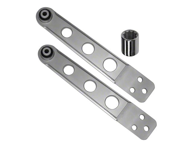 These extreme lower control arms are for Honda Civics and Acura Integras and RSXs. Made from aircraft aluminum alloy, these arms are available in a silver finish. When teamed up with front and rear camber arms SPC Performance provides you with a complete alignment solution when lowering your Civic, Del Sol, RSX, or Integra. NOTE: These arms are for appearance and weight saving only. They include a special Socket, Part 69330 which is required for installation. California Residents WARNING
