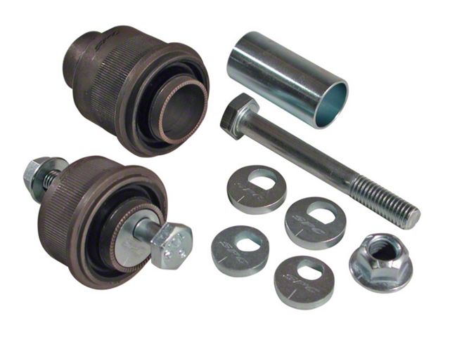 These rear control arm bushings provide an additional 1.25deg of camber and toe adjustment for the rear of the BMW 5 series. Replace the inboard bushings on the rear upper control arms with these innovative adjustable bushings for lifetime adjustability. Use standard bushing press sleeves and bushing press tool 72509 to remove the old bushings and press in the new ones. California Residents WARNING