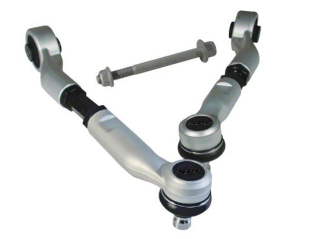 Adjust front camber and caster +-1.5deg on the Audi C8 platform with these forged aluminum adjustable control arms from SPC. OE style booted ball joints and bonded rubber bushings maintain factory ride, handling and noise, vibration, & harshness (NVH) parameters. Audi's unique multi-link suspension creates a 'Virtual' SAI. The factory does not publish a specification for caster, but SPC recommends 5deg to 6deg of caster as a preferred angle for tracking and return to center on these cars. The kit includes two arms to replace the two front upper arms on the right hand (RH) side. For the left hand (LH) side, use part number #81391. Want to be able to adjust both sides? Use part number #81393.
