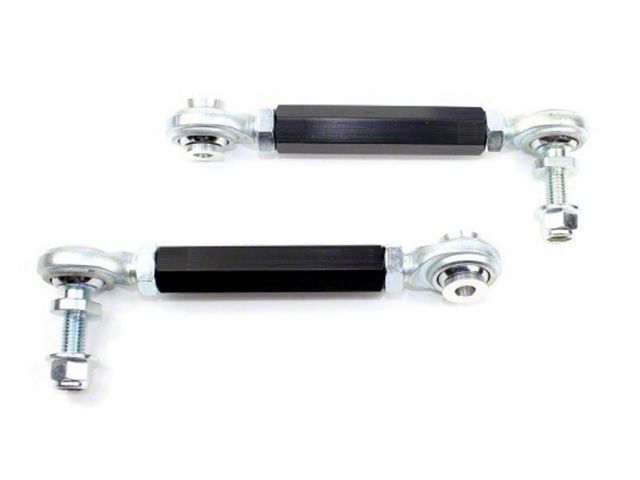 BMW E9X/E8X Rear Endlinks (RE) for the BMW E9X and E8X chassis feature massive Teflon lined FK 1/2" Bearings to provide the highest load capacity for use with stiffer aftermarket sway bars. Custom heat treated Chromoly High Misalignment studs connect to the sway bar and offer extreme articulation capability (65deg) to prevent the endlink from binding when used with different adjustment holes on aftermarket sway bars. Our Endlinks are length adjustable to eliminate preload on the sway bars, which can result from uneven settling of springs or uneven suspension heights from corner weighting. Black Anodized 6061-T6 Aluminum turnbuckles work in conjunction with the left and right hand threaded rod ends for simple and precise adjustment. These end links are perfect for street or race applications. Sold as a pair. Made in the USA. Applications: E8X 1 Series BMW M and non M (E81, E82, 128i, 135i) E9X 3 Series BMW M and non M (E90, E91, E92, 328i, 335i, 335d, M3) Need Replacements Rod Ends? SPL Parts Rod Ends - Contact Us Installation Instructions: SPL Parts Rear End Links E9X