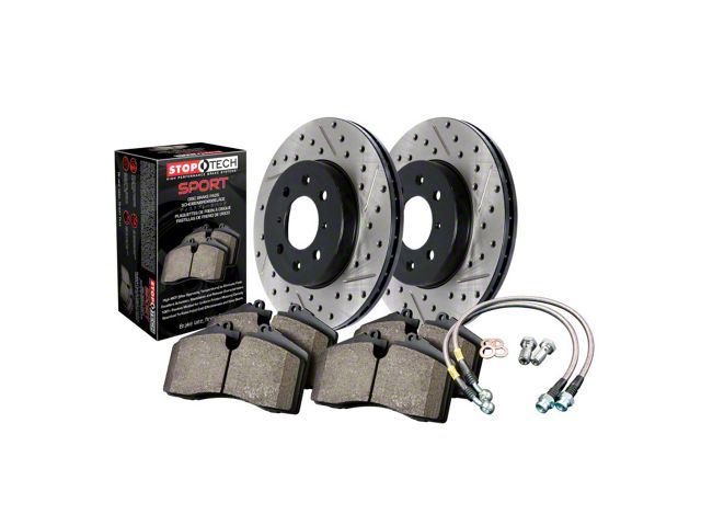 Significant brake performance improvements using the factory calipers and pre-matched; direct-replacement (OEM) sized components. This StopTech Sport Axle Pack includes drilled & slotted StopTech Sport Rotors; StopTech Sport Pads and StopTech Stainless Steel Lines.