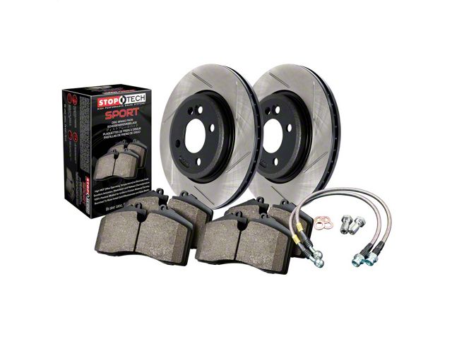 Significant brake performance improvements using the factory calipers and pre-matched; direct-replacement (OEM) sized components. This StopTech Sport Axle Pack includes Slotted StopTech Sport Rotors; StopTech Sport Pads and StopTech Stainless Steel Lines.