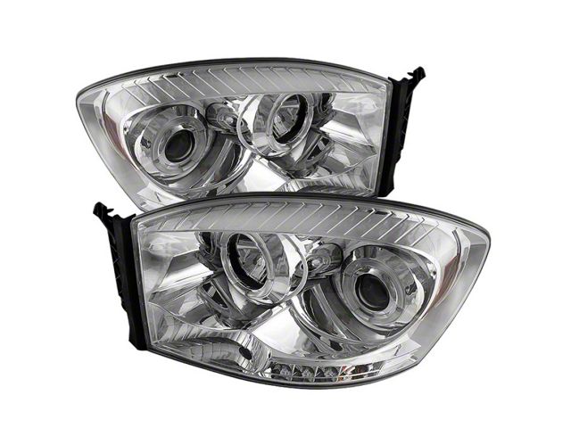 Enhance your Dodge Ram's appearance and safety with these premium projector headlights from Spyder Auto. Designed for direct replacement of stock lights, these headlights feature a sleek chrome finish, LED halo, and LED technology for superior illumination.