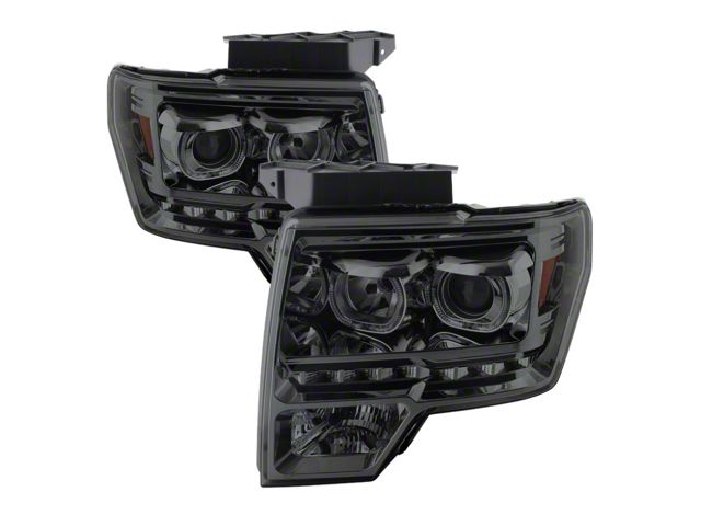 Xtune Ford F150 09-14 Projector Headlights Halogen Model Only LED Halo Smoked PRO-JH-FF15009-CFB-SM