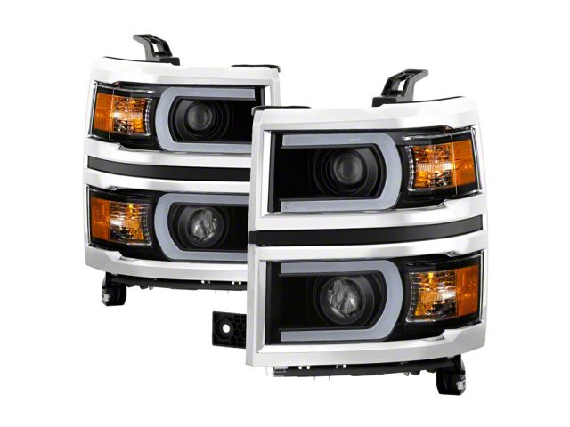 Xtune Chevy Silverado 1500 14-15 Projector Headlights Light Bar DRL Black