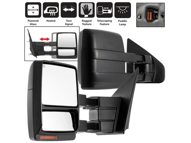 The xTune Ford F-150 07-14 Heated Amber LED Signal Telescoping Mirror Set (MIR-FF15007S-PWH-AM-SET) is an essential upgrade for your Ford F150. These power heated mirrors feature amber LED signals and a telescoping design, providing improved visibility and safety for all driving conditions.