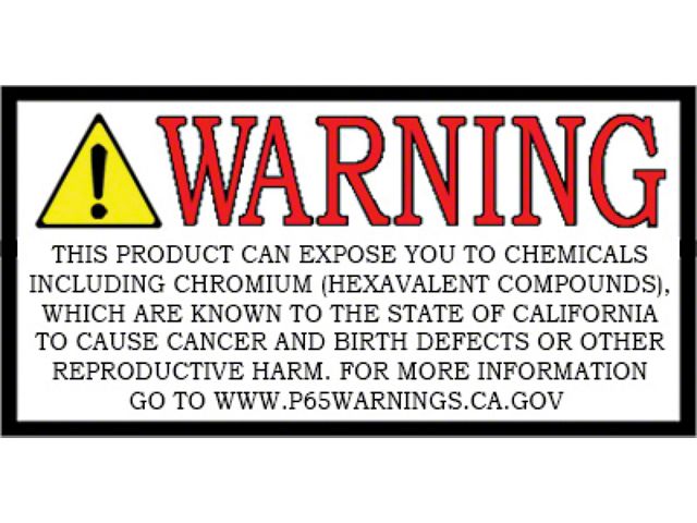 WARNING: Cancer & Reproductive Harm. For more information, go to www.P65Warnings.ca.gov