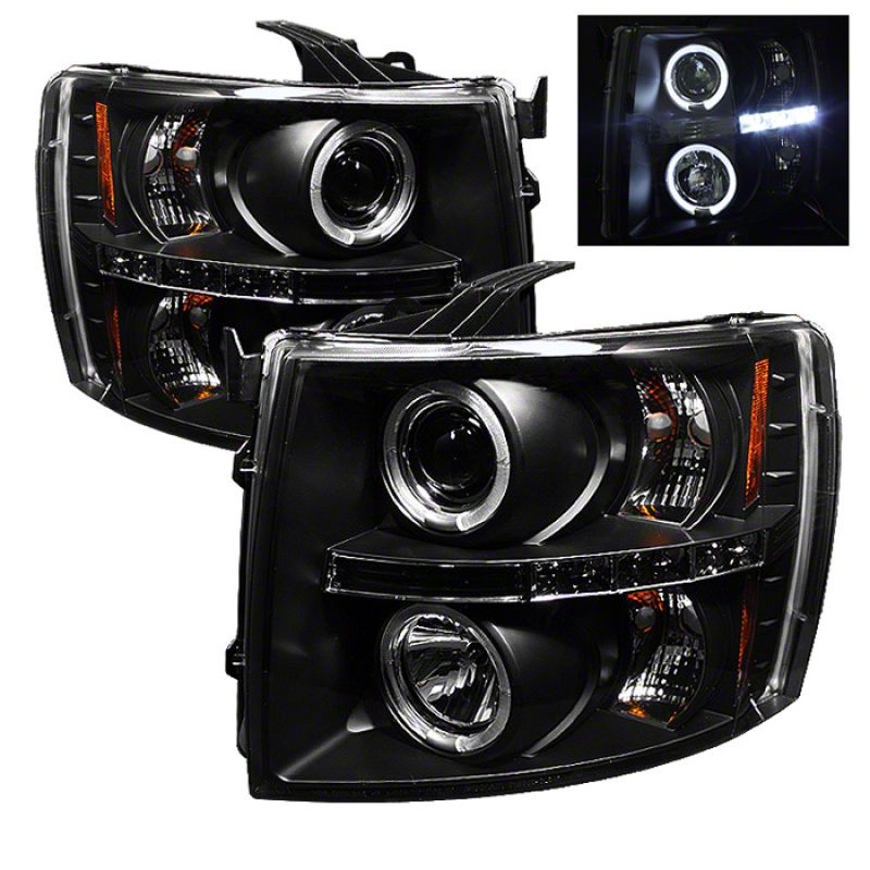 Spyder Chevy Silverado 1500 07-13 Projector Headlights LED Halo LED Blk PRO-YD-CS07-HL-BK