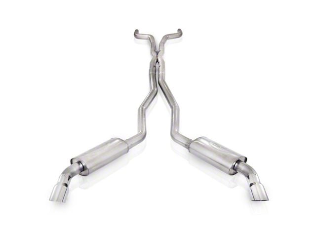 2010-15 Camaro 6.2L 304 SS CNC mandrel bent 3" dual exhaust system with x-pipe, dual s-tube turbo mufflers, mirror polished stainless steel double-wall tips, and all hangers and clamps for easy installation. Fits factory connection point.