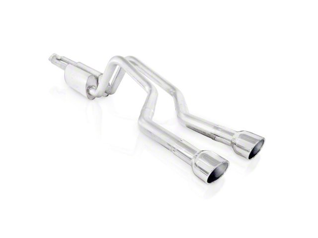 2006-09 Chevy Trailblazer SS Exhaust - 2-1/2" dual system with turbo S-tube mufflers. Stainless steel construction, TIG welded, includes Y-pipe adapter, 4" polished slash-cut tips, clamps and hangers. Exits two in center of back bumper. Fits to factory connection point. Will require removal of spare tire and trailer hitch.