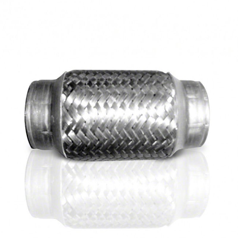 2 1/2" inside diameter, 8" long s/s flex joint. All 304 s/s construction. This is the best flex joint that you can buy. It has an interlocked internal diameter for high temp applications, and formed s/s ends. Great for isolating vibration or thermal expansion in the exhaust system. Recommended to weld in place.