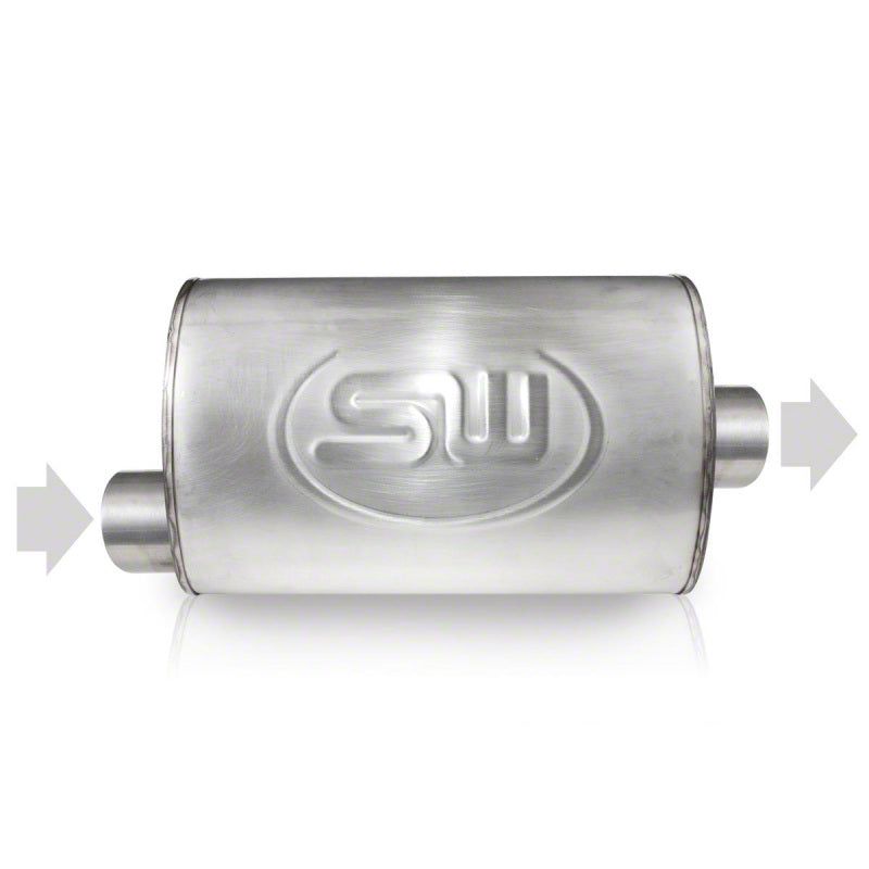 Turbo S-tube muffler, Made from 304 stainless steel for maximum corrosion resistance. This muffler has 2" ID offset inlet and a 2" OD center outlet with a 2" core and shell size 4" x 8" x 14" with an overall length of 18" with a mill finish. Stainless Works is the only manufacturer to make the body, core, and packing out of 304 stainless steel. Exclusive louvered core creates a sweet "Street Rod" deep tone that is very aggressive. These are TIG welded for strength and durability. These kits come with a lifetime warranty and proudly made in the USA.