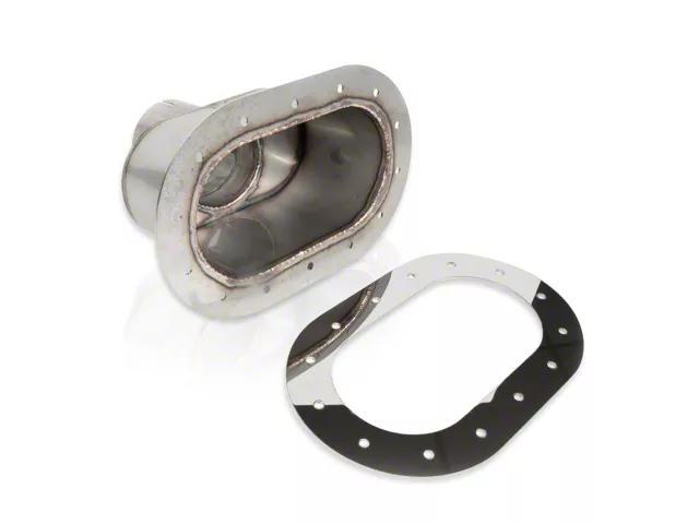Truck through body style exhaust tip, with 2-1/2" ID inlet, Oval style tip with flange & a polished trim ring. Trim plate outer measurement is 8" x 5". Made from 304 stainless steel for maximum corrosion resistance. The quality of our tips is far superior to the less expensive tips on the market. These are TIG welded for strength and durability. These kits come with a lifetime warranty and proudly made in the USA.