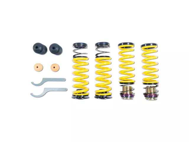 Our ST Adjustable Lowering Springs allow seamlessly adjustable lowering on vehicles with or without electronically adjustable dampers. They essentially turn any standard suspension into a coilover kit! Our new ST Adjustable Lowering Springs are now available for a variety of makes and models. The innovative ST threaded sleeve provides perfect fitment no matter if your car is equipped with standard shocks or an electronically adaptive damping system. With our ST Adjustable Lowering Springs, it's easy to convert your stock suspension into a height adjustable system. Similar to coilover kits, the ST Adjustable Lowering Springs allow a seamless ride height adjustment for your vehicle in reasonable lowering ranges. We supply vehicle specific dust protection and spring components that are designed to give you the most out of your lowering. With ST Adjustable Lowering Springs you can expect a dynamic and sporty driving experience. At ST suspensions, your driving experience is the main focus when it comes to our products. That is why we select vehicle specific spring rates in each ST Adjustable Lowering Spring kit to perfectly match your original dampers. Our Adjustable Lowering Springs are made out of chrome silicon steel to guarantee a long lasting and quality driving experience. You will not only benefit from a lowered center of gravity and more direct handling but also improved steering and more stability during cornering. ST suspensions springs are constructed to OEM quality standards. They are made of high strength chrome silicon steel in a cold winding process then multi-tempered and have a final epoxy coating. This process helps resistance to different weather conditions. The high strength ST spring steel also ensures that our ST springs are block resistant and the springs do not sag.