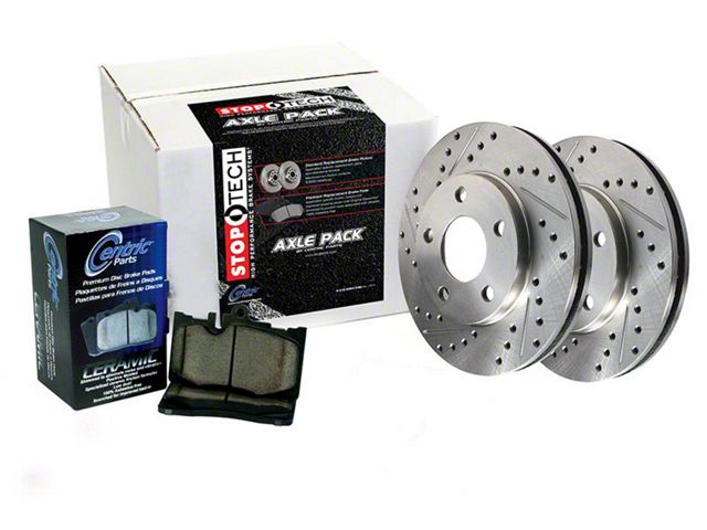Designed to improve a vehicle's looks and braking performance without breaking the bank; StopTech Select Sport Axle Packs include drilled & slotted silver zinc-coated rotors and StopTech Street Pads.