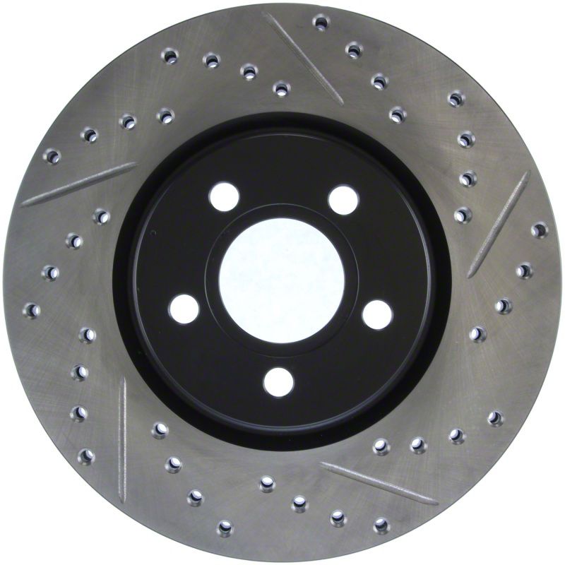 StopTech Drilled and Slotted Sport Rotors are 1-piece direct replacement brake discs for factory brake systems and stock calipers that look great behind your wheels and offer significantly improved braking performance. The unique cross-drilling and slotting aids with heat and brake dust dispersal; prevents glazing of the pads; adds bite and improves wet and dry braking performance. Built to last; the black e-coating provides protection from corrosion and the high carbon metallurgy (in most applications) offers quieter operation; better crack resistance and increased performance.