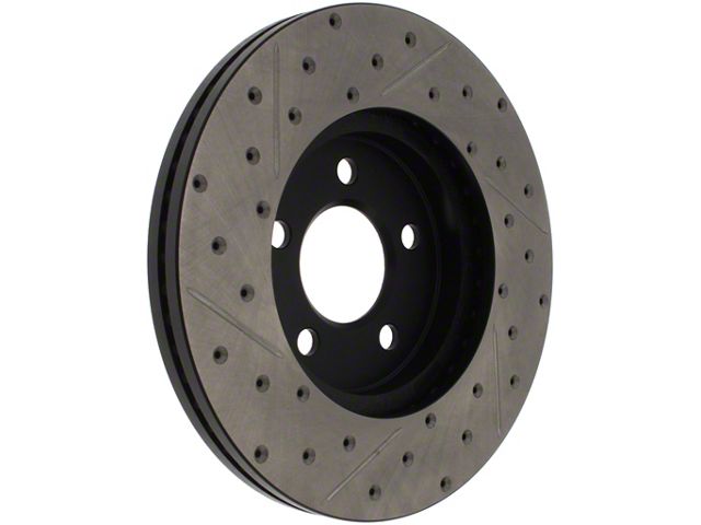 StopTech Drilled and Slotted Sport Rotors are 1-piece direct replacement brake discs for factory brake systems and stock calipers that look great behind your wheels and offer significantly improved braking performance. The unique cross-drilling and slotting aids with heat and brake dust dispersal, prevents glazing of the pads, adds bite and improves wet and dry braking performance. Built to last, the black e-coating provides protection from corrosion and the high carbon metallurgy (in most applications) offers quieter operation, better crack resistance and increased performance.