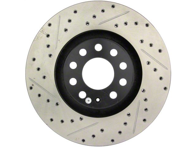 StopTech Drilled and Slotted Sport Rotors are 1-piece direct replacement brake discs for factory brake systems and stock calipers that look great behind your wheels and offer significantly improved braking performance. The unique cross-drilling and slotting aids with heat and brake dust dispersal, prevents glazing of the pads, adds bite and improves wet and dry braking performance. Built to last, the black e-coating provides protection from corrosion and the high carbon metallurgy (in most applications) offers quieter operation, better crack resistance and increased performance.