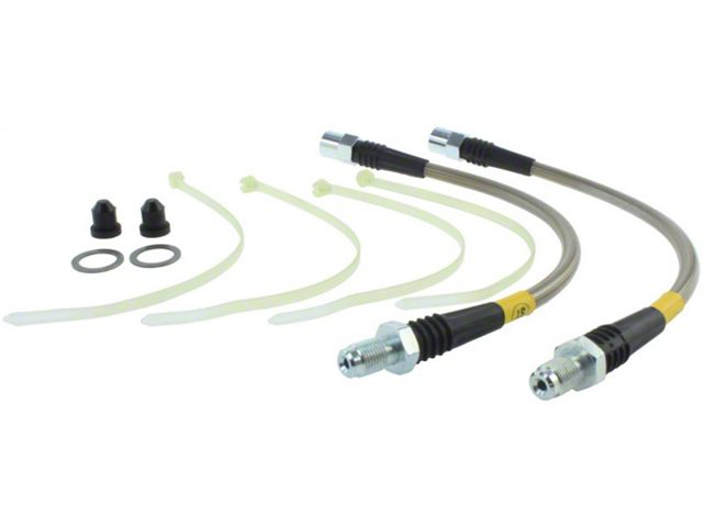 StopTech Stainless Steel Braided Brake Lines provide a quicker, firmer, more consistent pedal response by maintaining consistent brake pressure. Additionally, stainless steel lines provide precision brake modulation, especially during threshold braking. The improvement in pedal feel is more dramatic on older vehicles where the factory rubber line may have softened and swelled due to age. A variety of end fittings are available to meet application needs. All fittings are engineered for proper fit and durability. All necessary brackets and fasteners are included with each line kit.