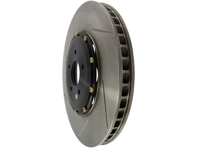 StopTech AeroRotor Replacement Kits ARK are designed to replace your vehicle's original factory rotors, while retaining the factory brake calipers. Although the ARK is the same diameter and thickness as the factory rotors, it offers improved cooling, braking, and handling. The directional, floating AeroRotors allow independent expansion of the rotor and hat without "coning," thanks to elongated drive pin holes. ARK components include AeroRotor friction rings with patented internal vane design, pre-assembled to billet aluminum AeroHats with directional stand-offs that optimize cooling airflow. The patented AeroRotor vane design pushes up to 80 percent more air than factory rotors for better cooling and reduced fade on the track. The aircraft-grade aluminum hats and 2-piece AeroRotors are up to 8 pounds lighter than stock rotors, allowing faster acceleration and deceleration, and improved handling. StopTech AeroRotors are available slotted or cross-drilled. These slots or holes allow better dissipation of heat, friction material and debris, assuring that fresh pad material is in contact with the rotor every time the brakes are applied. An optional anti-corrosion, zinc finish is available for customers in cold climates, where salt and chemicals are used to melt snow and ice. The zinc coating also benefits customers who prefer no visible surface rust on the vanes and outer circumference of the rotors. StopTech AeroRotors are 100 percent made in the USA.