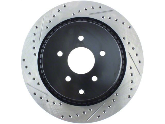 StopTech Drilled and Slotted Sport Rotors are 1-piece direct replacement brake discs for factory brake systems and stock calipers that look great behind your wheels and offer significantly improved braking performance. The unique cross-drilling and slotting aids with heat and brake dust dispersal; prevents glazing of the pads; adds bite and improves wet and dry braking performance. Built to last; the black e-coating provides protection from corrosion and the high carbon metallurgy (in most applications) offers quieter operation; better crack resistance and increased performance.