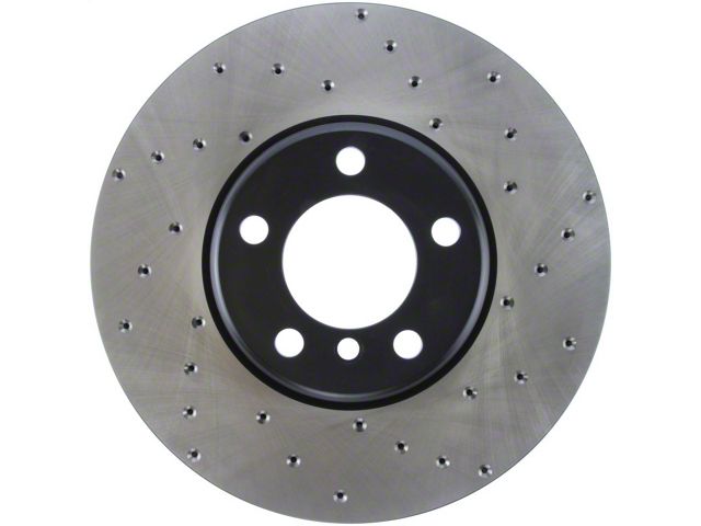StopTech Drilled Sport Rotors are 1-piece direct replacement brake discs for factory brake systems and stock calipers that look great behind your wheels and offer significantly improved braking performance. The unique cross-drilling aids with heat and brake dust dispersal; prevents glazing of the pads; adds bite and improves wet and dry braking performance. Built to last; the black e-coating provides protection from corrosion and the high carbon metallurgy (in most applications) offers quieter operation; better crack resistance and increased performance.