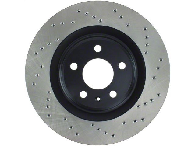 StopTech Drilled Sport Rotors are 1-piece direct replacement brake discs for factory brake systems and stock calipers that look great behind your wheels and offer significantly improved braking performance. The unique cross-drilling aids with heat and brake dust dispersal; prevents glazing of the pads; adds bite and improves wet and dry braking performance. Built to last; the black e-coating provides protection from corrosion and the high carbon metallurgy (in most applications) offers quieter operation; better crack resistance and increased performance.