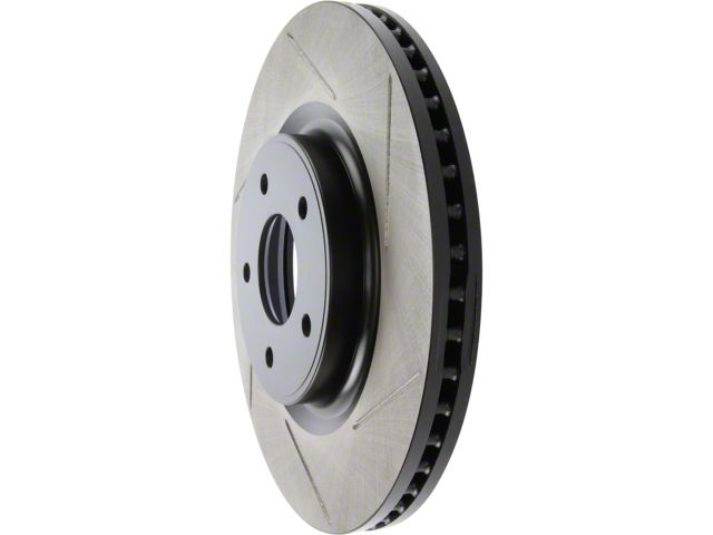 StopTech Slotted Sport Rotors are 1-piece direct replacement brake discs for factory brake systems and stock calipers that look great behind your wheels and offer significantly improved braking performance. The unique slotting aids with heat and brake dust dispersal; prevents glazing of the pads; adds bite and improves wet and dry braking performance. Built to last; the black e-coating provides protection from corrosion and the high carbon metallurgy (in most applications) offers quieter operation; better crack resistance and increased performance.