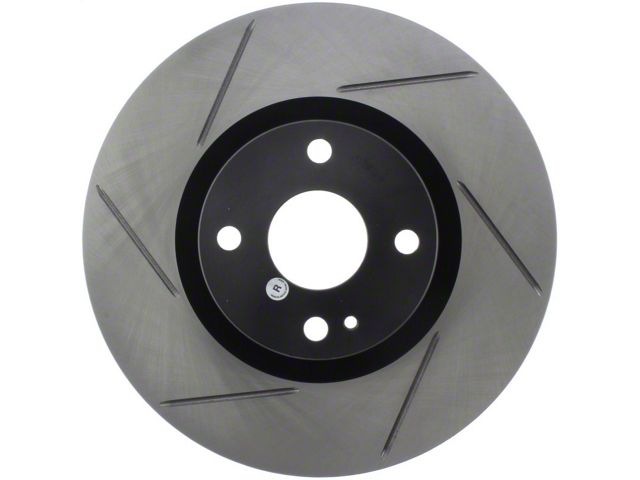 StopTech Slotted Sport Rotors are 1-piece direct replacement brake discs for factory brake systems and stock calipers that look great behind your wheels and offer significantly improved braking performance. The unique slotting aids with heat and brake dust dispersal, prevents glazing of the pads, adds bite, and improves wet and dry braking performance. Built to last, the black e-coating provides protection from corrosion and the high carbon metallurgy (in most applications) offers quieter operation, better crack resistance, and increased performance.