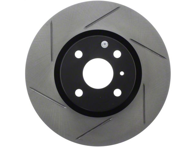 StopTech Slotted Sport Rotors are 1-piece direct replacement brake discs for factory brake systems and stock calipers that look great behind your wheels and offer significantly improved braking performance. The unique slotting aids with heat and brake dust dispersal; prevents glazing of the pads; adds bite and improves wet and dry braking performance. Built to last; the black e-coating provides protection from corrosion and the high carbon metallurgy (in most applications) offers quieter operation; better crack resistance and increased performance.
